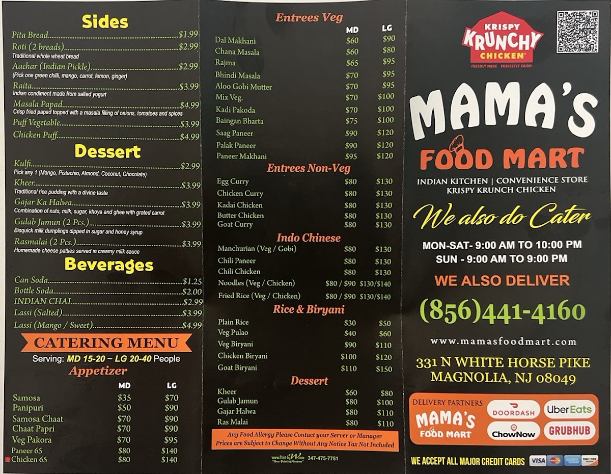 MAMA's Indian Kitchen & Food Mart Menu